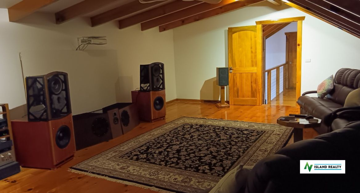 Currently grid-connected, the home enjoys negative electricity costs, a rarity in island living.