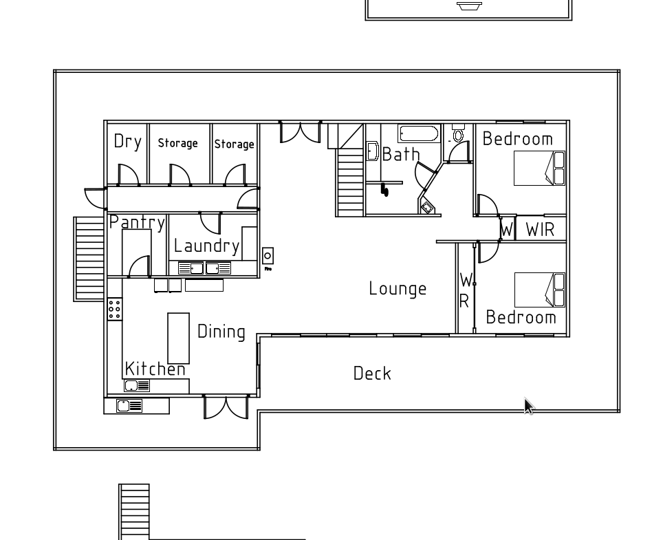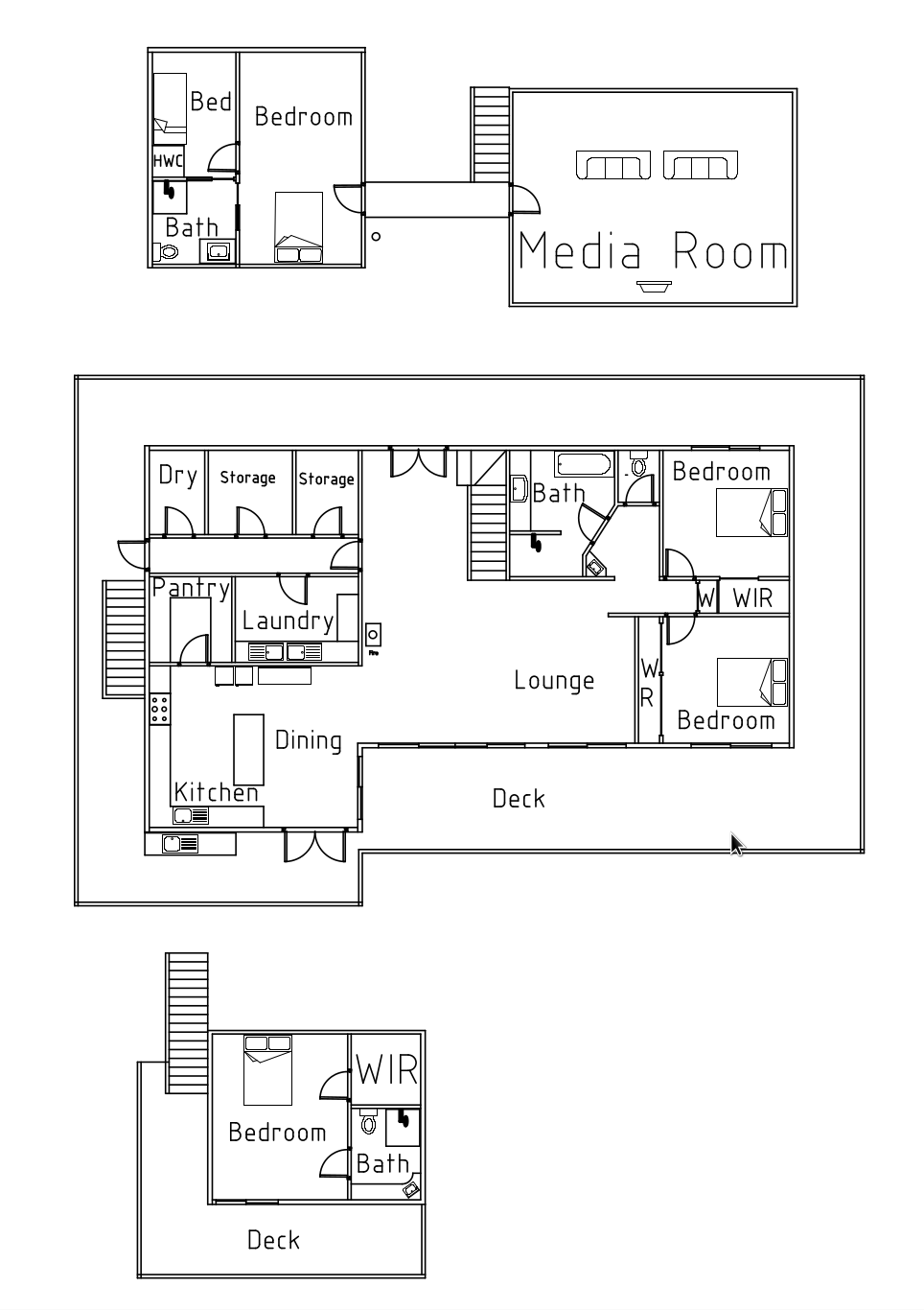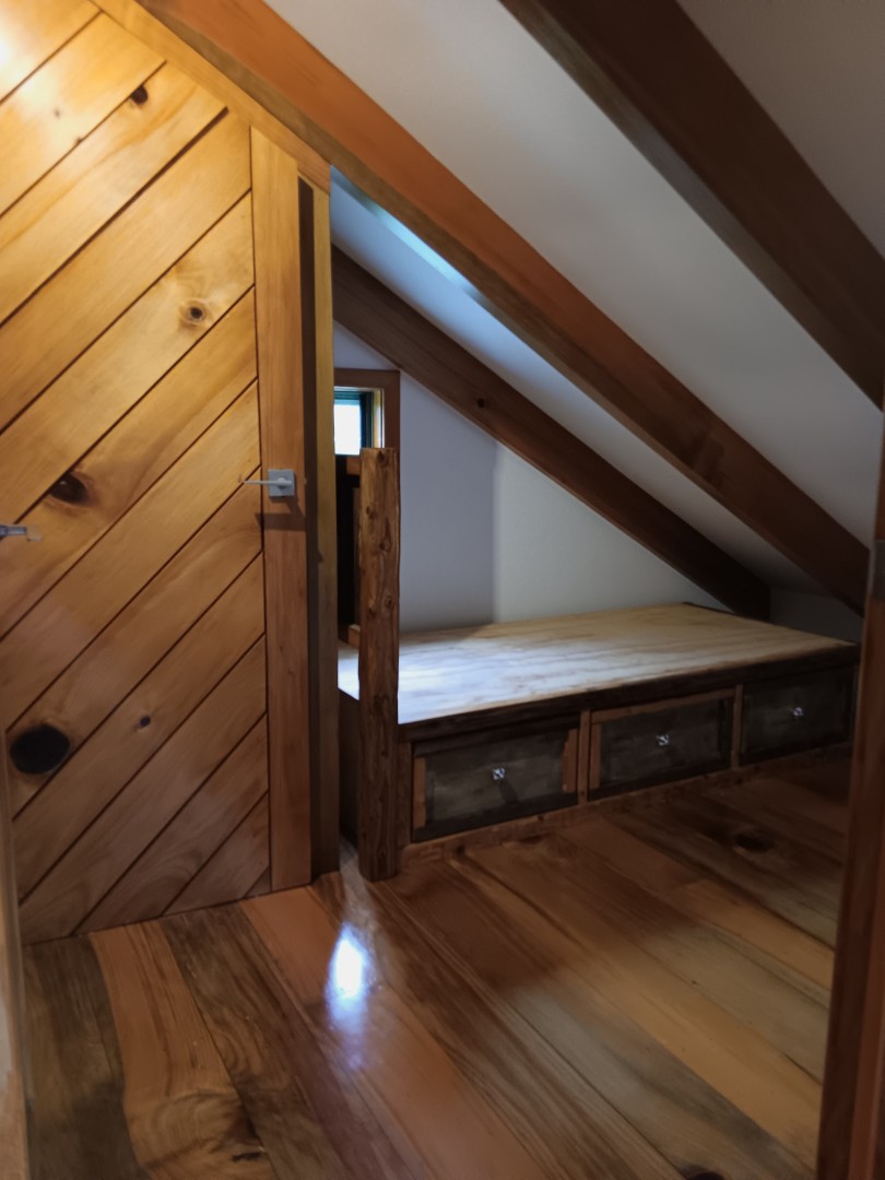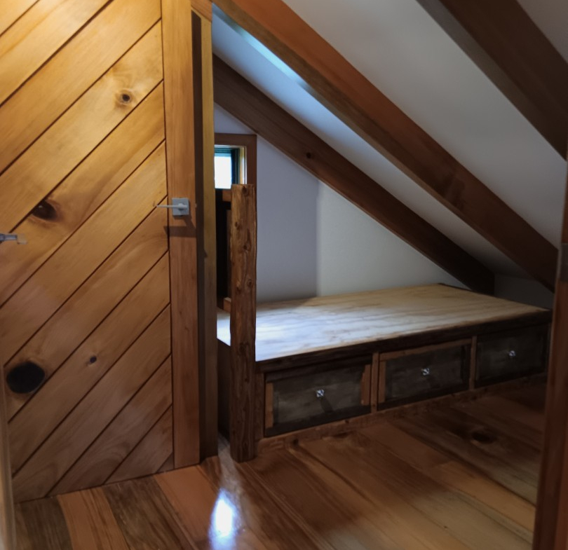 Two upstairs bedrooms connected via a bridge-style gangway